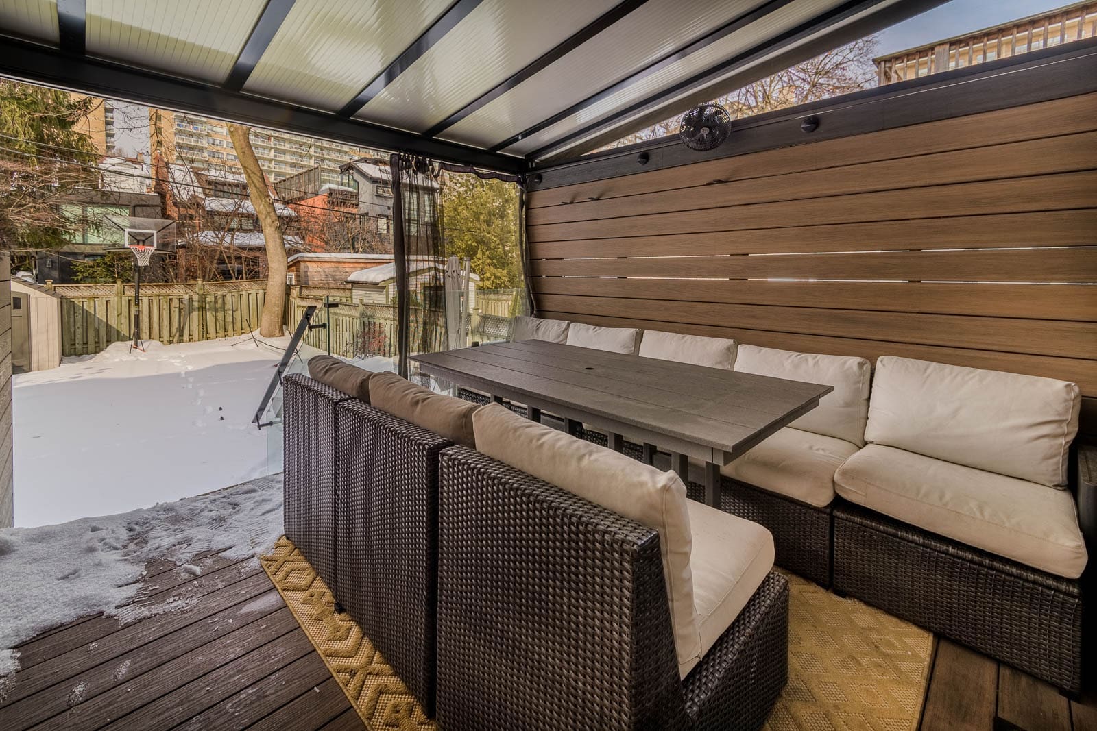 Modern and stylish, beautifully maintained 5-bedroom, 3-level home for lease. Offering exceptional space and comfort featuring main level radiant heated flooring throughout. Inviting living room with custom built-in shelving. Spacious dining room showcases a built-in dry bar and buffet. Chef’s kitchen equipped with gas stove, stainless steel appliances, and generous counter space and ample pantry storage. Walk out to private covered deck and landscaped backyard with plenty of storage below deck, perfect for outdoor dining or quiet evening. Second level with 3 spacious bedrooms and sunroom, perfect for home office, reading nook, or play area. Third floor is dedicated to a private primary retreat, complete with a sitting room which could be converted to 5th bedroom featuring built-in storage and removable desk, and a luxurious four-piece bathroom with a rain shower. Conveniently located in a quiet, tree-lined street in the beautiful Deer Park neighbourhood, only a short walk from trendy bars, restaurants and just steps to TTC subway and Yonge Street. Steps from prestigious private schools including Upper Canada College (UCC) and Bishop Strachan School (BSS). whole home water filtration system. Easy access to Loblaws, Farm Boy, Longos, Sobeys, shops, restaurants, parks, trails, schools, and so much more!