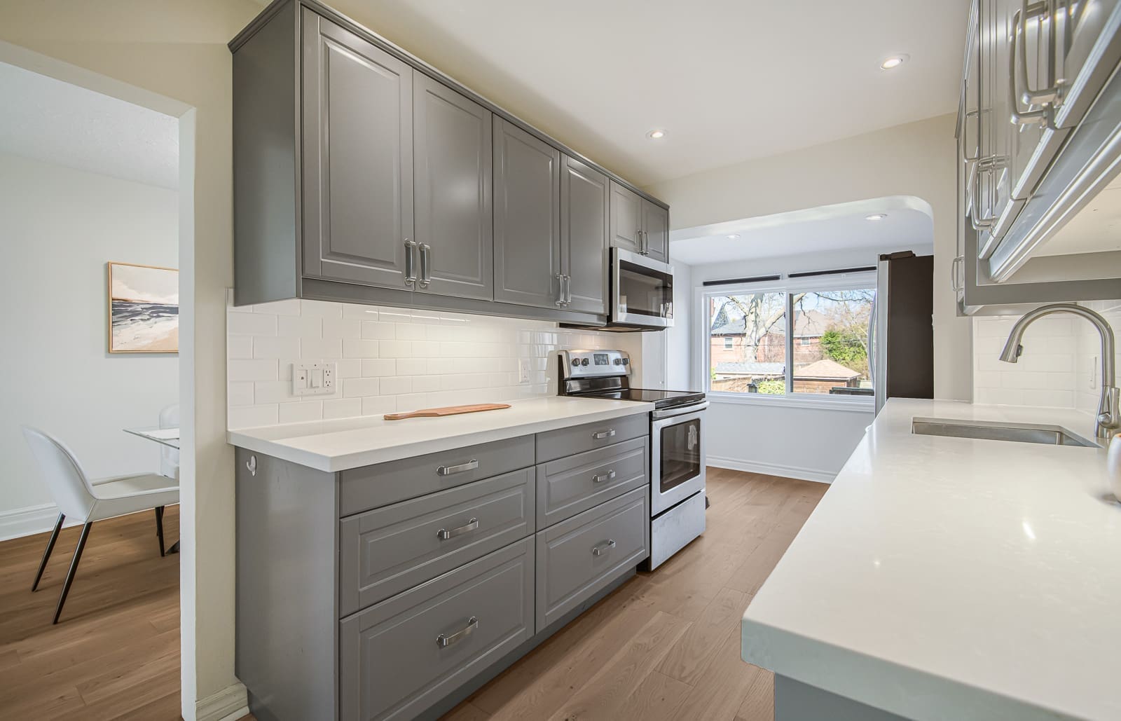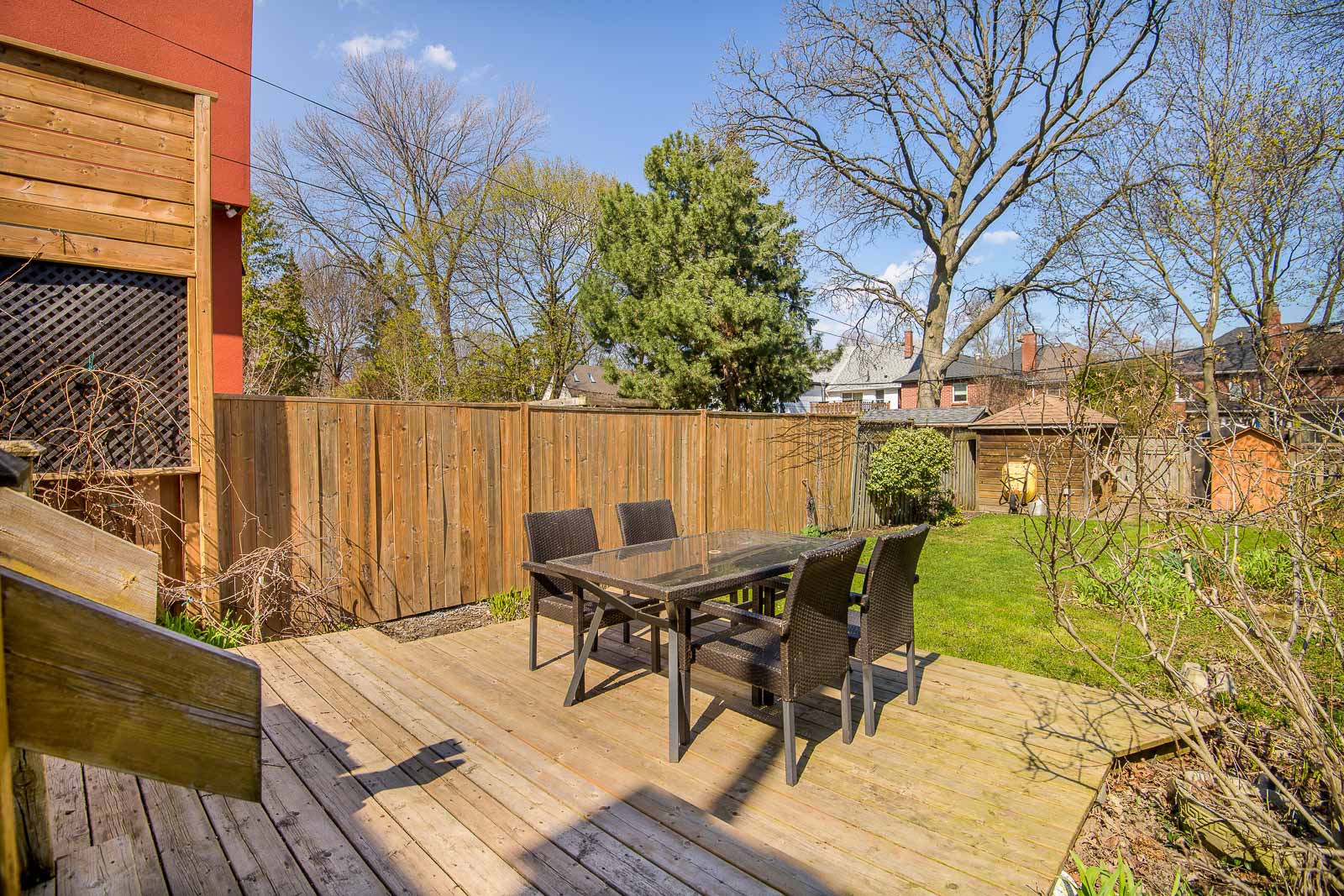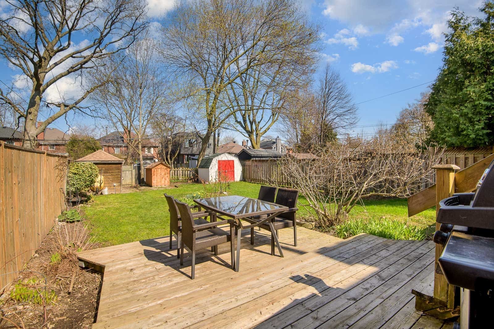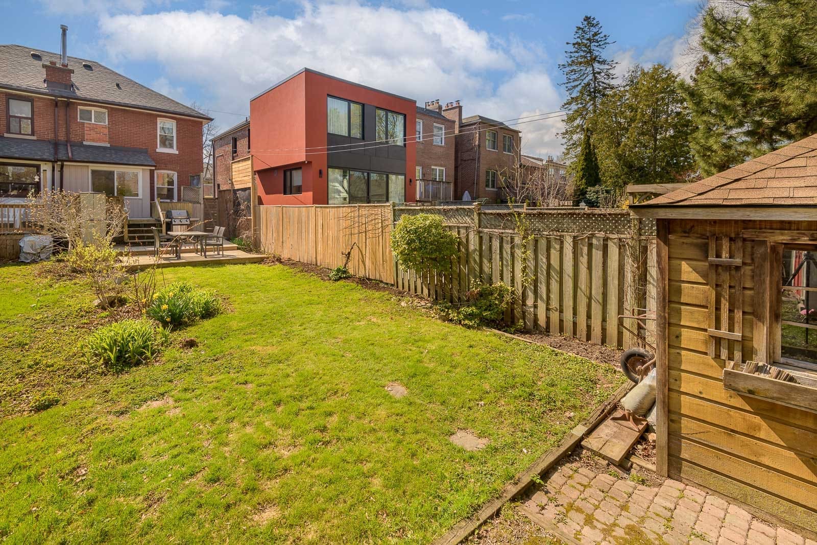 Welcome to this family-friendly, semi-detached home in the heart of Leaside. Perfectly situated directly across from Trace Maines Park and Community Centre, Toronto Public Library, and Leaside Tennis Club. This contemporary recently renovated home features warm wide-plank wood flooring throughout. Bright, open-concept living area overlooks the front yard from the large picture window. The seamless flow leads into a spacious dining area, perfect for entertaining, while large windows fill the home with natural light. Modern galley style eat-in kitchen with stainless steel appliances and breakfast area with walk out to deck. Spacious bedrooms on second floor and ample closet spaces. Third bedroom with built-in double murphy bed. Finished basement with wall-to-wall built-in perfect for home theatre, home office, and storage space. Backyard oasis perfect for relaxing and entertaining guests. Backyard studio/workshop with power. Excellent schools: Rolph Road PS, Bessborough Drive MS, and Leaside High School. Conveniently located close to shopping, Costco, Longo’s, Farm Boy, Metro, Loblaws, Canadian Tire, HomeSense, schools, parks, TTC, DVP, restaurants, and so much more!
