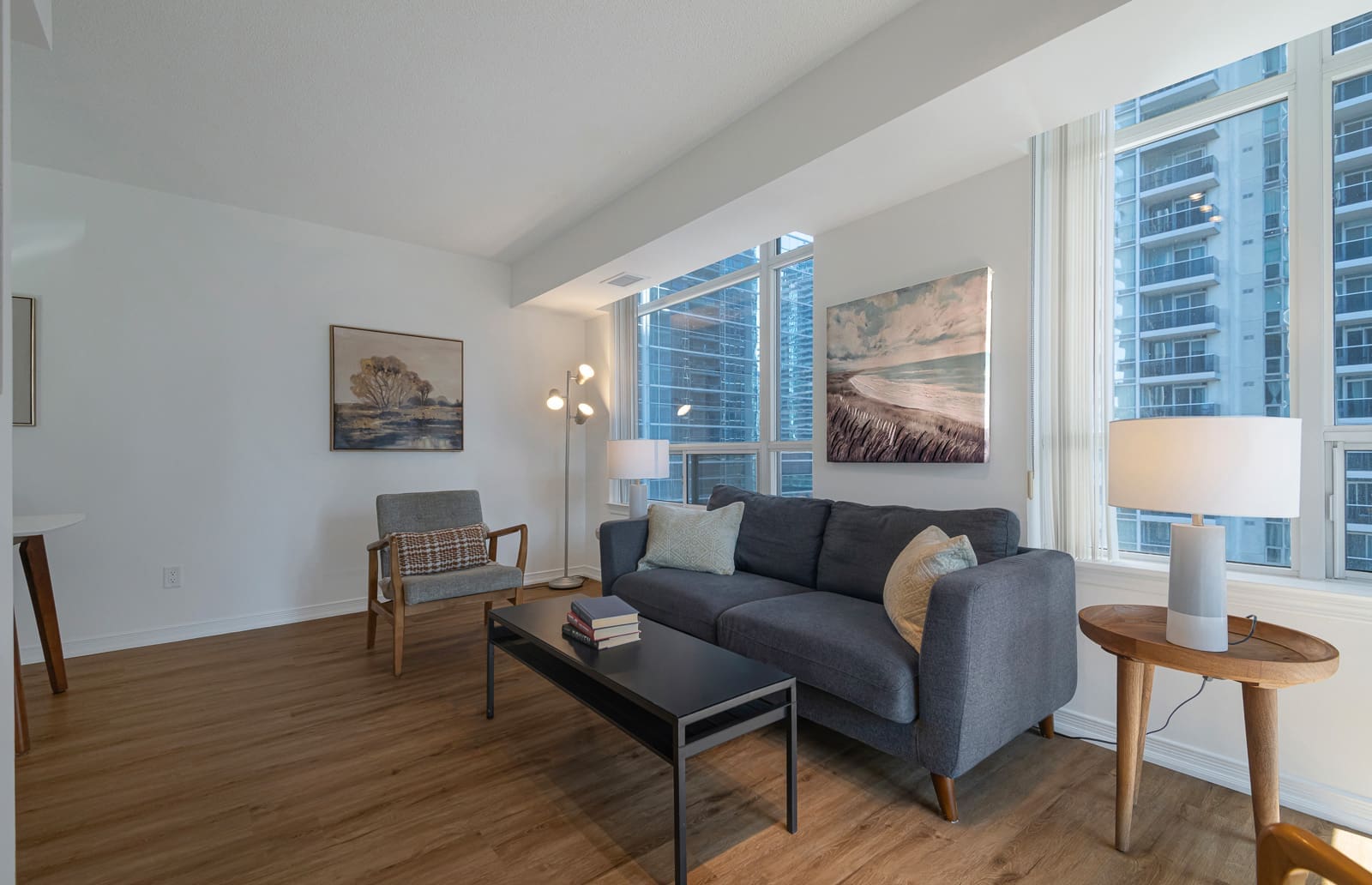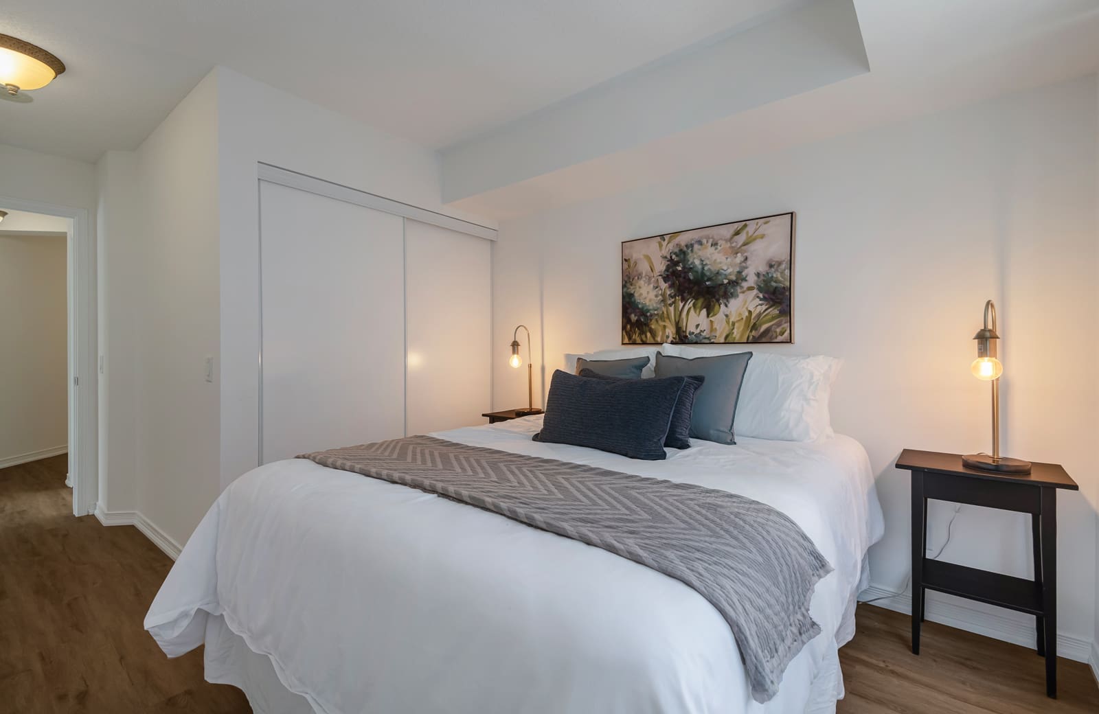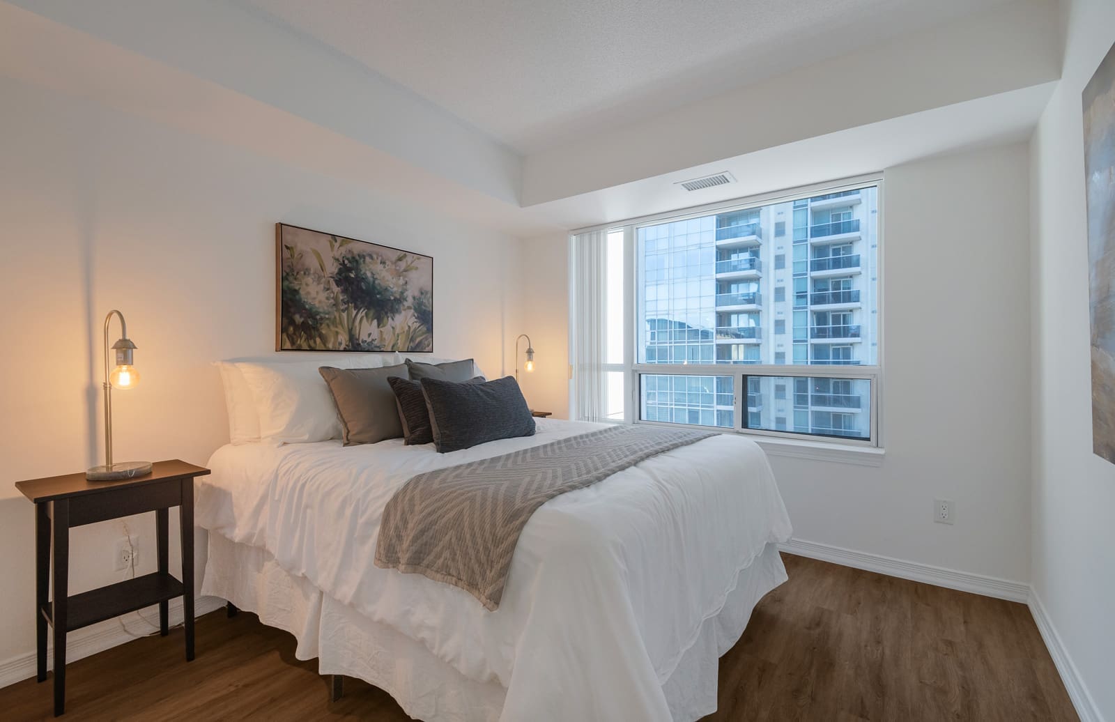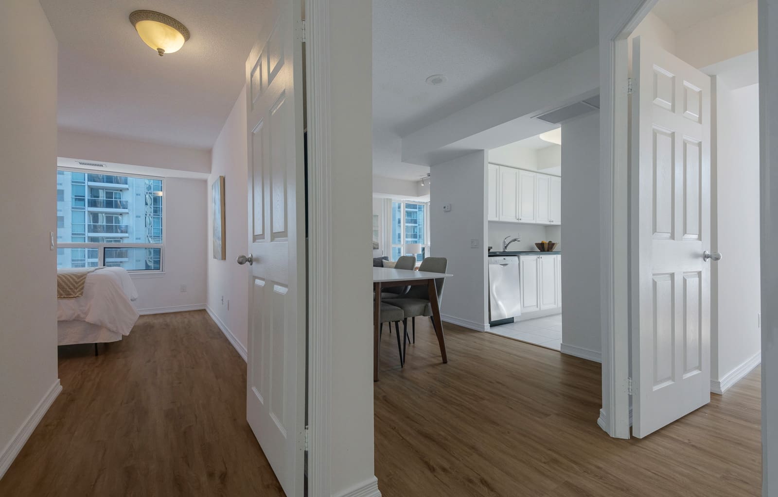 Newly renovated, spectacular corner unit with split layout design in the heart of North York. This 955 sq. ft. home features brand new flooring throughout and gorgeous South East views of the city skyline. Open concept living and dining area with bright windows and walk out to private balcony. Galley style kitchen with eat-in breakfast area overlooking the neighbourhood. Primary bedroom with 3-piece bath and walk-in closet. Second bed with large window and spacious closet. Excellent building amenities including indoor swimming pool, sauna, gym, concierge, party room, visitor parking, etc. Conveniently located just steps to TTC subway station and Highway 401. Just steps to Mel Lastman Square, Galleria Supermarket, Longos, library, restaurants, shops, parks, schools, and so much more!