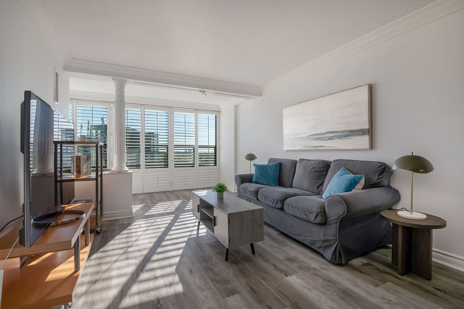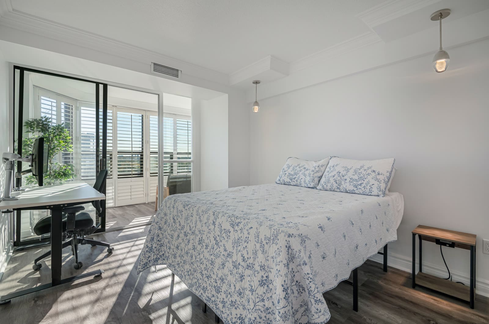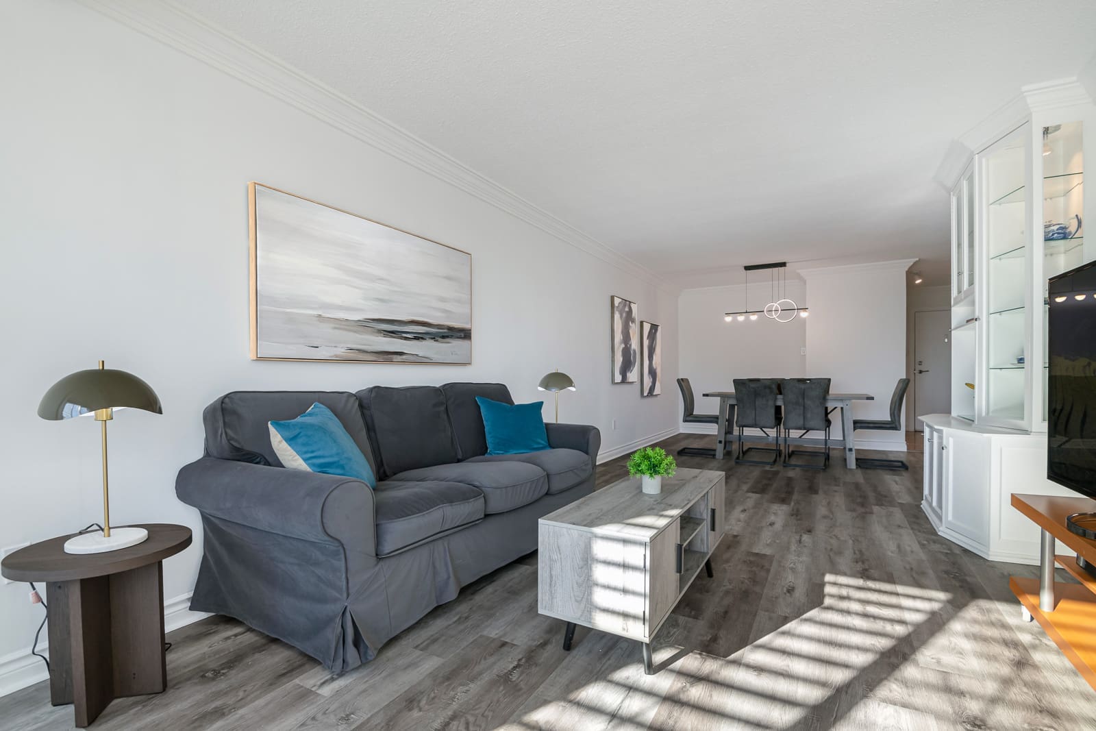 Modern and stylish 2+1 bed, 2 bath condo at Yonge and Sheppard. Move in ready! This newly renovated 1,185 sq. ft. home is steps to Sheppard-Yonge TTC subway station, includes all utilities with Bell Fibre high-speed internet and cable TV. Spacious living room overlooking large solarium with bright windows with desirable south facing views of the CN Tower. Dedicated dining area perfect for entertaining. Gorgeous eat-in kitchen with stainless steel appliances, French doors, stone countertops, and pot lights. Private laundry room with built-in shelving perfect for storage. Luxurious primary bedroom with 4 piece bathroom and double closets. Second bedroom with large closet and access to solarium. Ensuite locker perfect for storage. Excellent building amenities including: exercise room with change rooms and sauna, squash court, sauna, recreation room for table tennis and children’s play, large outdoor garden grounds with year round BBQ and mature trees, underground car wash, 24 hour concierge, billiards room, party room, visitor parking, etc. Conveniently located with easy access to Sheppard-Yonge TTC subway station and Highway 401. Just steps to Longos, Food Basics, parks, schools, shops, restaurants, and so much more!