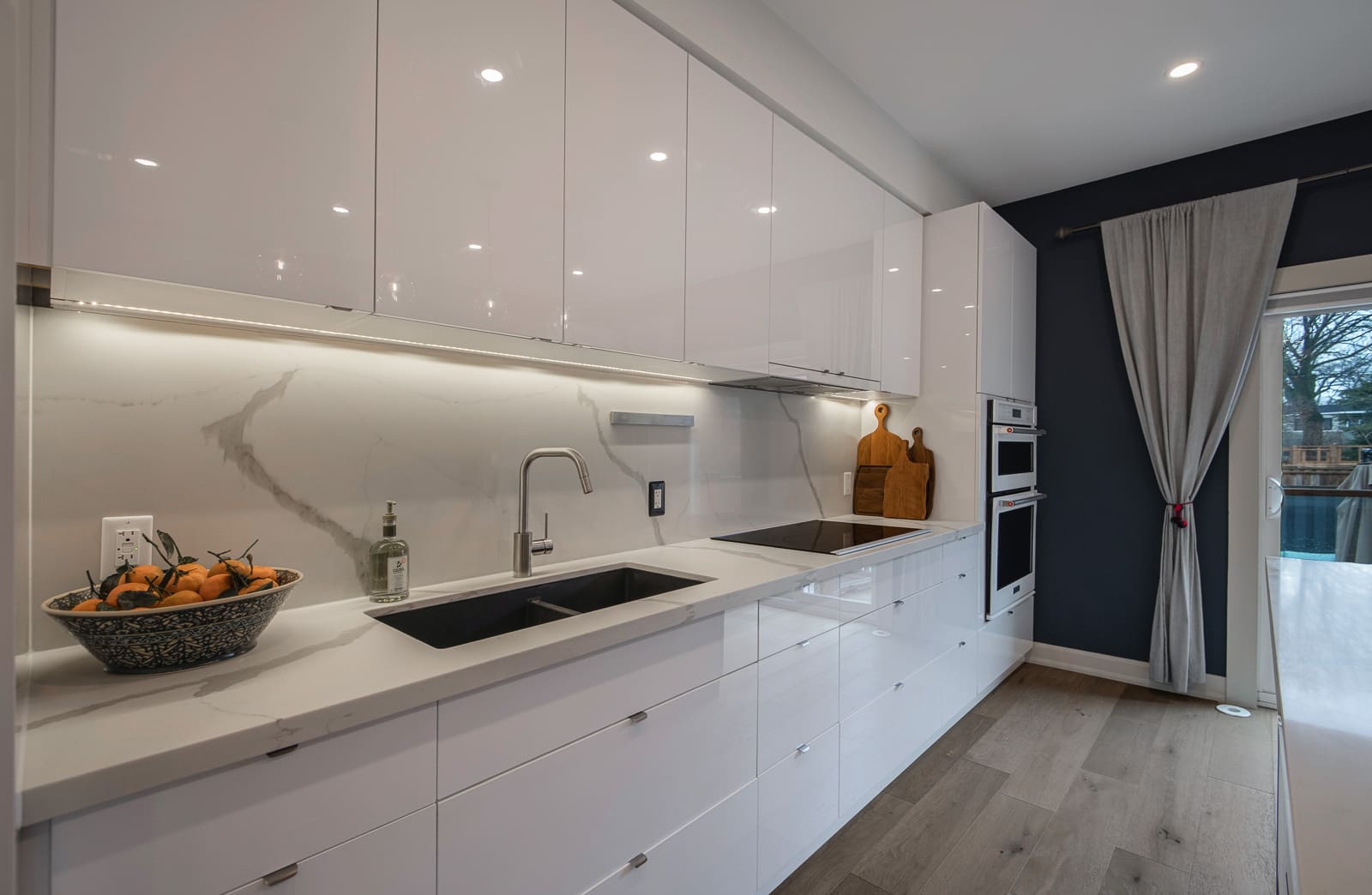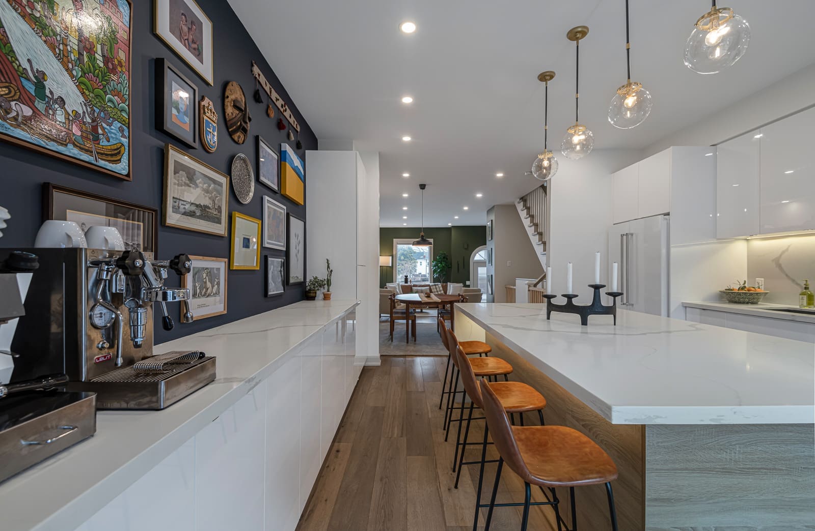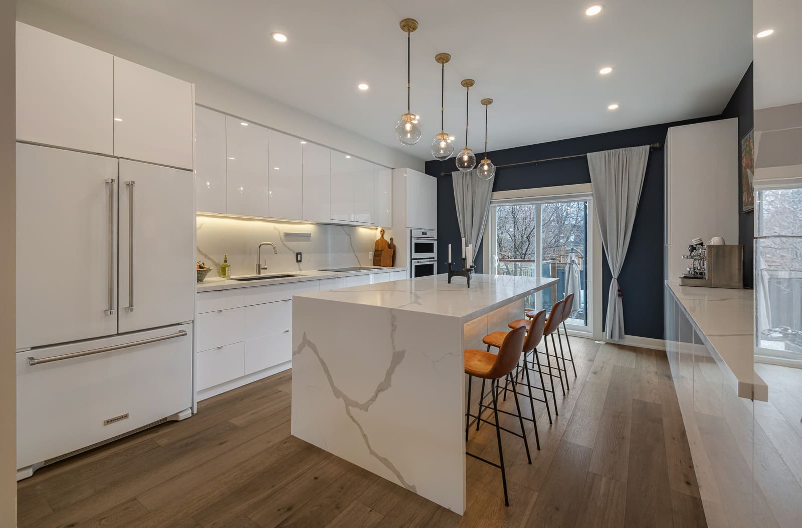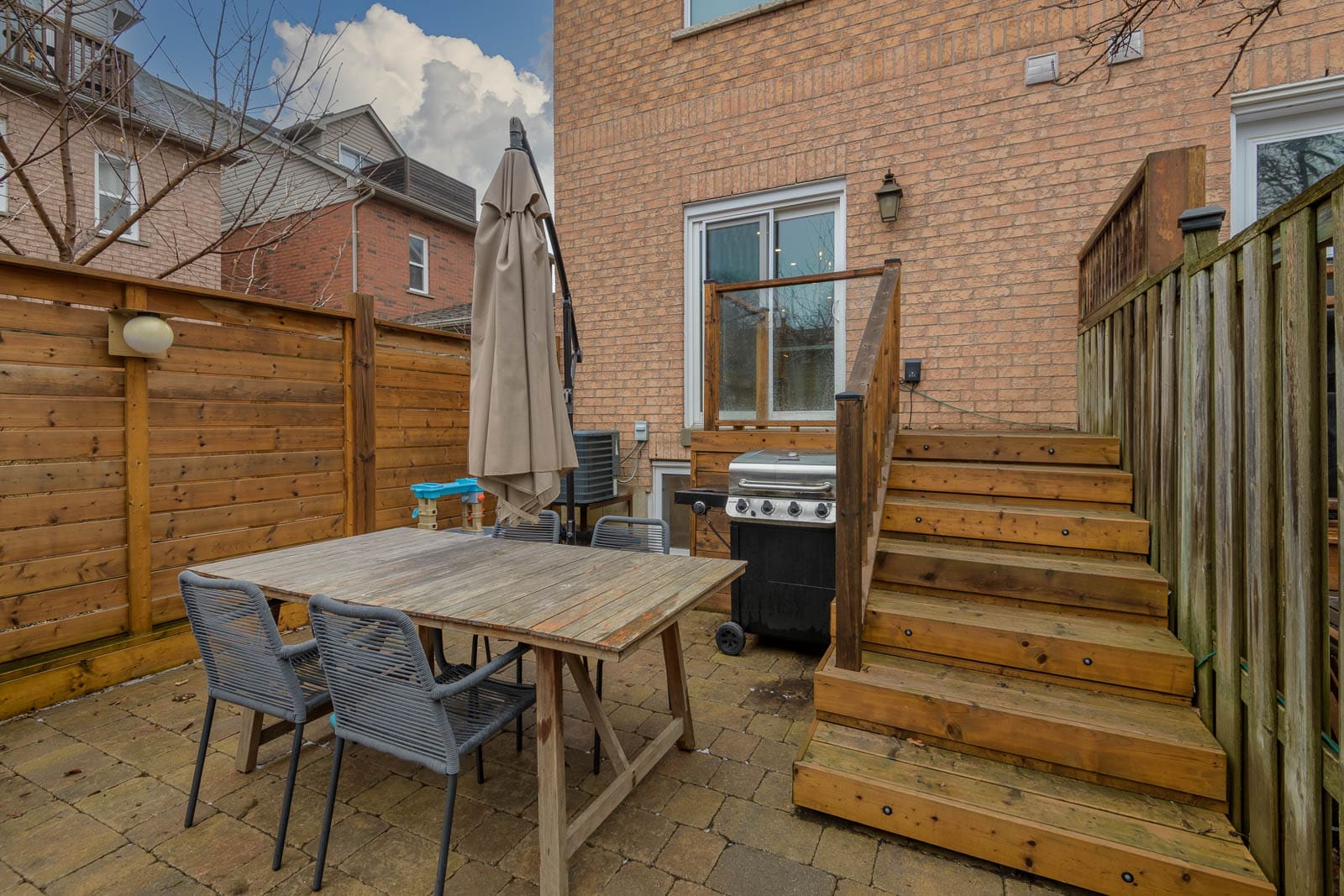 Spectacular renovated 3-bedroom townhome nestled on a quiet private enclave in the Upper Beach, offering a rare sense of community where neighbours gather for summer potlucks and children play safely together. Over 2,200 sq ft of beautifully designed living space with 3 car parking. Bright open concept main floor with high ceilings, new wide-plank hardwood floors, and walls of windows. Magnificent designer kitchen renovation featuring waterfall counters, high-end appliances, oversized island with seating for 6, and walk-out to a sunny south-facing garden. The fully redesigned backyard is perfect for entertaining with flagstone, interlock stonework, garden beds, and a gas line Dekko fireplace, creating a private outdoor retreat. Stunning third-floor primary retreat with a luxurious 5-piece ensuite, walk-in closet, and private deck. High finished basement offers flexible office/rec space with third bathroom. Garage includes additional storage. Unbeatable convenient location just 500m to Danforth GO Station (12-minute ride to Union Station), easy access to Woodbine and Main Street TTC subway station, and approx. 25 minutes to downtown by car. Steps to excellent coffee shops, bakeries, restaurants, local brewery, new YMCA on Kingston Road, parks, schools, and so much more!